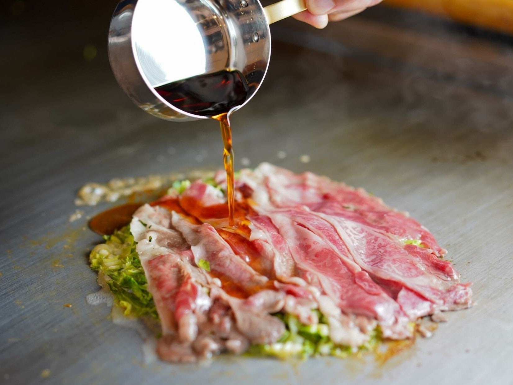 贅沢に使用した和牛を、出汁の旨味に合うよう特製割下で味付けし、鉄板の上で香ばしく焼き上げます。仕上げに株式会社やまつ辻田の極上七味唐辛子をひとふり。とろける肉と出汁の旨味、鉄板から立ち上る香ばしさは、五感すべてで楽しめる一品です。